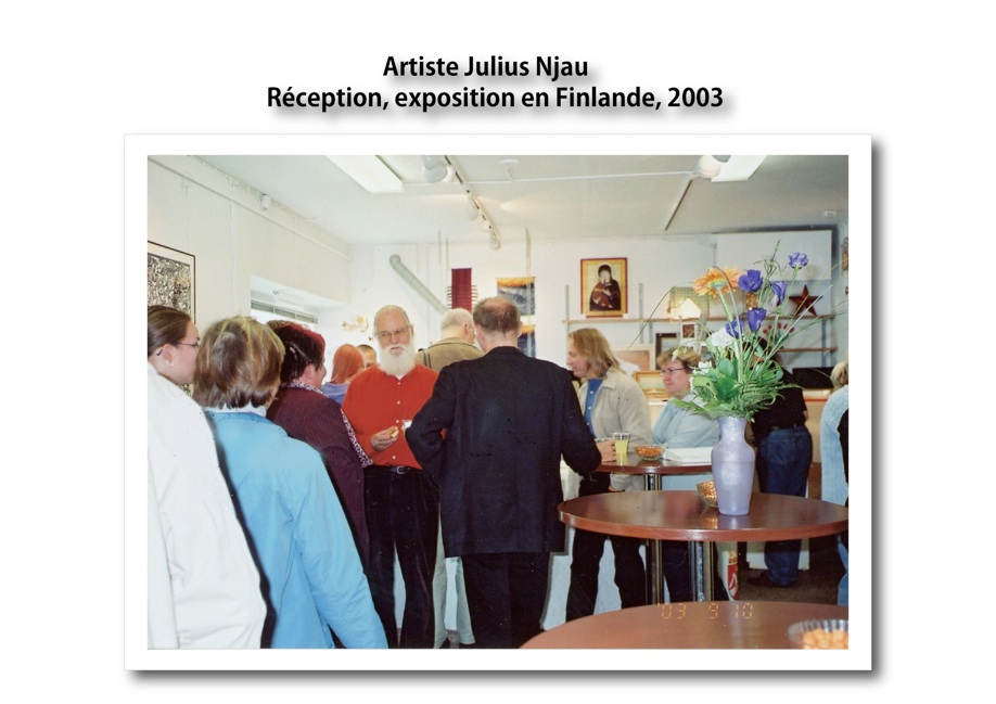 The big incident occurred to him, which was a major turning point for his life, he grew up in a big nature, and he loved playing soccer in his childhood. In 1972, he broke his leg badly during a soccer practice, and then had been in hospitalized for two years. He was a kind of boy who loved drawing by nature drew various sorts of pictures while he was in hospitalized. Sometimes he painted even on the floor, and then was scolded. At that time, he draw animals, monsters, landscapes and the patients around him for fun. Under those circumstances, a Finland, one of the doctors working for the hospital discovered his talent in paintings.”The accident was an unlucky thing, but I would have not been an artist if I hadn’t had it. That changed my life.” Mr. Njau said.